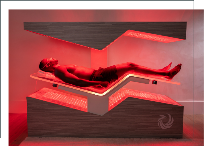 The Ammortal Chamber is a scientifically proven experience that combines photobiomodulation light therapy, pulsed electromagnetic fields, molecular hydrogen therapy, vibroacoustic sound, guided breathwork and meditation, and soothing vibration.